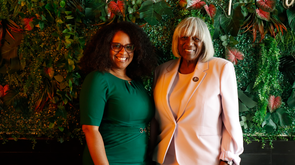 Andrea Jackson Gavin (left), the program director of the HBCU Digital Library Trust, poses with Paulette R. Dillard (right), the president of Shaw University during a site visit at the Shaw University Library. Photo courtesy of the HBCU Digital Library Trust.